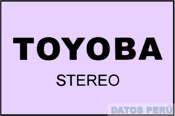 La denominación TOYOBA STEREO escrita en letras características dentro de una figura rectangular, en los colores lila y negro; conforme al modelo adjunto.