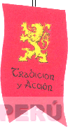 El logotipo conformado por la denominación TRADICION Y ACCIÓN escrita en letras características, arriba se aprecia la figura estilizada de un león parado, todo dentro de una figura irregular semejante a un estandarte, en los colores amarillo, rojo y negro; conforme al modelo adjunto
