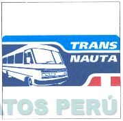 La denominación TRANS NAUTA escrita en letras características, dispuesta en dos líneas y separadas por una línea irregular; y la representación estilizada de un ómnibus; debajo una figura irregular, todo en los colores azul, turquesa, rojo y blanco; conforme al modelo adjunto
