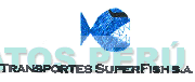 El logotipo conformado por la denominación TRANSPORTES SUPERFISH S.A. escrita en letras características, acompañada de la representación caricaturizada de un pez con dientes y antifaz, todo en la combinación de colores azul, celeste, negro, blanco; conforme al modelo adjunto