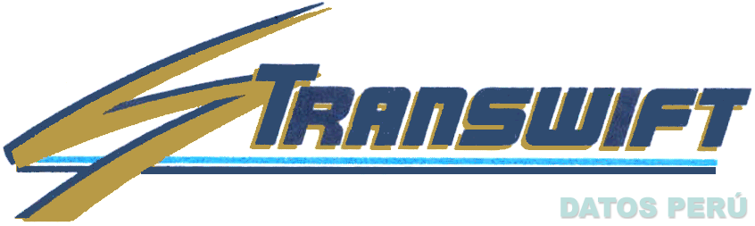 El logotipo conformado por la denominación TRANSWIFT escrita en letras características, a cuyo lado izquierdo se aprecia una figura irregular en forma de rayo y en la parte inferior dos líneas horizontales, en los colores dorado, azul y celeste; conforme al modelo adjunto