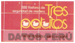 LA ETIQUETA DE FORMA RECTANGULAR Y FONDO ROJO, DIVIDIDA EN CUADRADOS IGUALES DE COLOR BLANCO, QUE CONTIENE LA DENOMINACION TRES PATITOS ESCRITA EN LETRAS CARACTERISTICAS Y EN COLOR AMARILLO. DENTRO DE LAS LETRAS "P", "A" Y "T" APARECE LA FIGURA DE UN PATITO EN COLOR BLANCO, CONFORME AL MODELO,