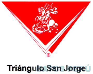 EL LOGOTIPO CONSTITUIDO POR LA DENOMINACION TRIANGULO SAN JORGE Y LA FIGURA ESTILIZADA DE UN TRIANGULO CON EL VERTICE HACIA ABAJO, DENTRO DEL CUAL APARECE LA FIGURA DE UN CABALLO Y SU JINETE, EN LOS COLORES ROJO Y BLANCO, CONFORME AL FACSIMIL ADJUNTO,