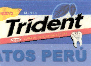 La denominación TRIDENT escrita en letras características en color negro sobre una franja de color blanco, debajo una línea de color rojo con la denominación ADAMS escrita en letras características dentro de una figura ovoide, y frases alusivas al producto, al lado inferior derecho la representación humanizada de un diente sonriendo de color blanco, y en la parte superior derecha la representación estilizada de una hoja de menta de color azul y todo el fondo de color azul; conforme al modelo adjunto
