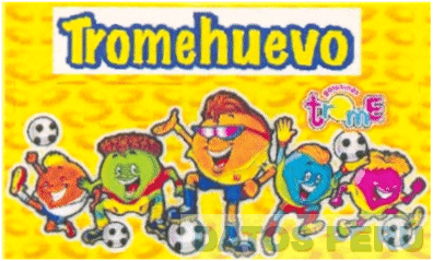 El logotipo conformado por la denominación TROMEHUEVO escrita en letras características así como la denominación TROME escrita en letras características, en la parte inferior cinco bolos humanizados vestidos con ropa deportiva y sus balones, en los colores amarillo, rojo, verde, azul, celeste, anaranjado, fucsia, negro y blanco; conforme al modelo adjunto