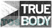 La denominación TRUE BODY escrita en letras características, dentro de un rectángulo, y al lado izquierdo la esquina de un romboedro, en la combinación de colores blanco, negro y plomo; conforme al modelo adjunto