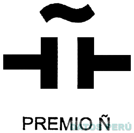 La denominación PREMIO Ñ escrita en letras características y un logotipo conformado por dos figuras angulares en forma de letra T horizontal y una línea curva; conforme al modelo adjunto