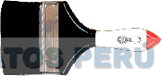 La figura de una brocha (sin reivindicar), en cuyo mango se aprecian la denominación TUMI escrita en letras características, la figura de un Tumi en posición horizontal, todo en la combinación de colores blanco, rojo, azul marino y negro; conforme al modelo adjunto