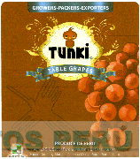 La denominación GROWERS-PACKERS-EXPORTERS TUNKI TABLE GRAPES AGRILAP y frases alusivas al producto (sin reivindicar) y logotipo (se reivindican colores), conforme al modelo