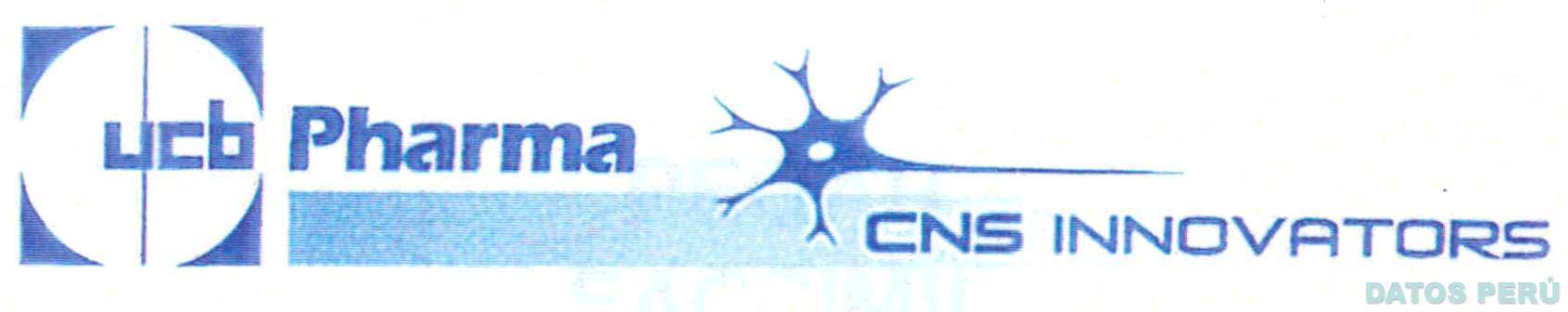 La denominación CNS INNOVATORS escrita en letras características en color azul sobre una banda difuminada en color celeste y la denominación UCB PHARMA escrita en letras características en color azul con una figura geométrica de cuatro ángulos y una línea vertical, en la parte central se muestra una figura con ramificaciones en color azul; conforme al modelo adjunto