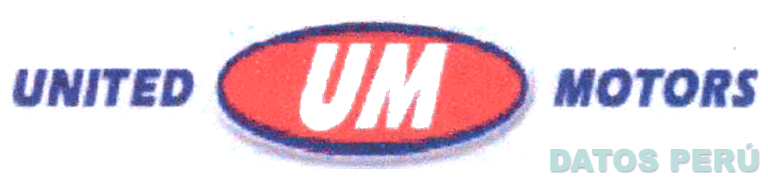 El logotipo conformado por la denominación UNITED MOTORS escrita en letras características, todo en los colores azul oscuro y blanco y la figura oval conteniendo las letras UM, en la combinación de colores rojo, azul y blanco; conforme al modelo adjunto