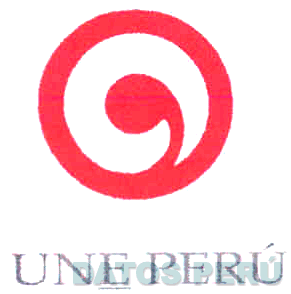 La denominación UNE PERÚ escrita en letras características, en donde la letra E de la palabra UNE se encuentra subrayada y en la parte superior de esta se aprecia una figura irregular, en colores rojo, blanco y gris; conforme al modelo adjunto