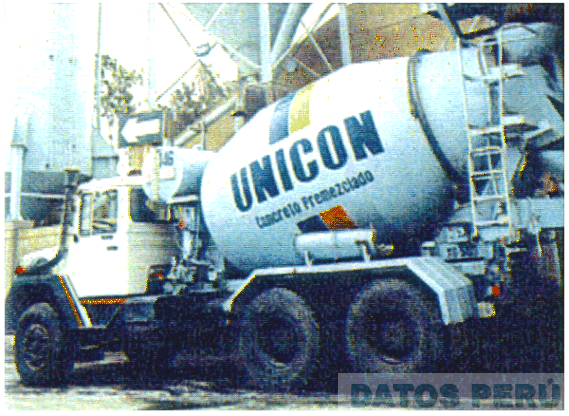 EL LOGOTIPO CONFORMADO POR LA DENOMINACION UNICON Y SU DISTINTIVO CONFORMADO POR DOS FRANJAS DE COLORES AZUL Y AMARILLO, SOBRE UN RECIPIENTE COLOR GRIS DE CONCRETO PREMEZCLADO, SEGUN FACSIMIL ADJUNTO