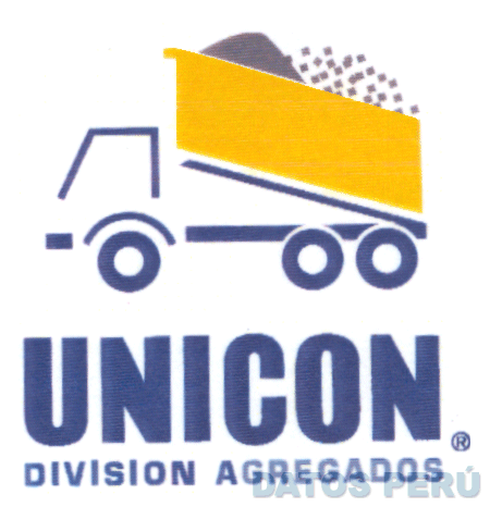 EL LOGOTIPO CONFORMADO POR LA FIGURA ESTILIZADA DE UN CAMION CUYA TOLVA O CAJON SE ENCUENTRA INCLINADA, EN LA PARTE INFERIOR, LA DENOMINACION UNICON ESCRITA EN LETRAS CARACTERISTICAS GRANDES, DEBAJO DE LA CUAL APARECE LA FRASE DIVISION AGREGADOS, EN LA COMBINACION DE COLORES AZUL Y AMARILLO, CONFORME AL MODELO ADJUNTO