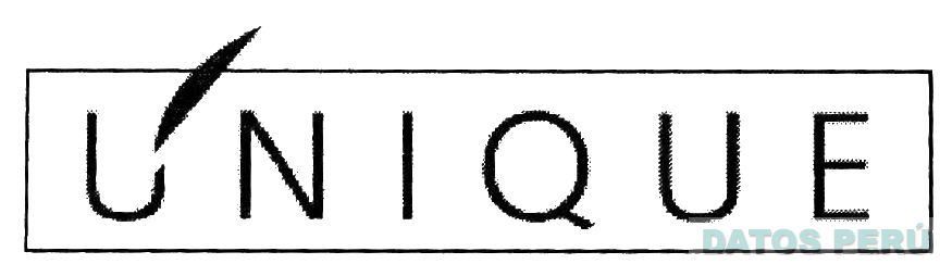 El logotipo conformado por la denominación UNIQUE escrita en letras características, encerrado en un rectángulo y de la cual sobresale una figura característica de la letra U; sin reivindicar colores; conforme al modelo adjunto