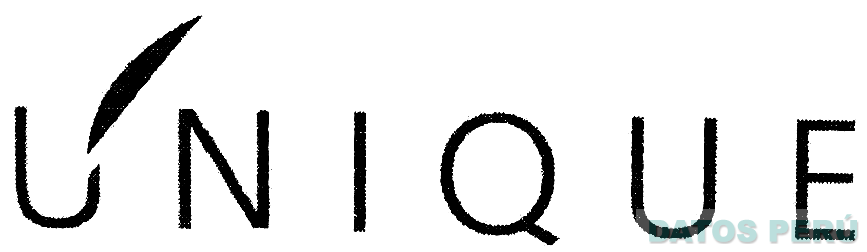 El logotipo conformado por la denominación UNIQUE escrita en letras características, sobresaliendo del extremo superior derecho de la letra U una pestaña, sin reivindicar colroes; conforme al modelo adjunto