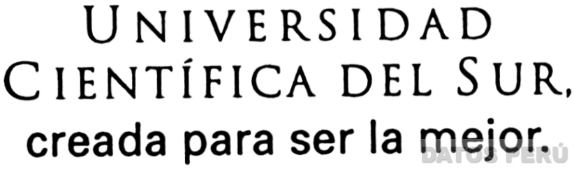 LA DENOMINACION UNIVERSIDAD CIENTIFICA DEL SUR, CREADA PARA SER LA MEJOR, ESCRITA EN LETRAS CARACTERISTICAS; SEGUN MODELO ADJUNTO