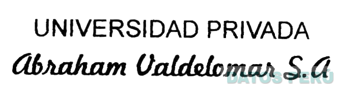 El logotipo conformado por la denominación UNIVERSIDAD PRIVADA ABRAHAM VALDELOMAR S.A. escrita en letras características de color negro con fondo blanco; conforme al modelo adjunto.