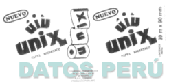 La denominación UNIX, la primera y segunda palabra UNIX lleva encima las letras UIU, al centro de ambas palabras UNIX se encuentra un rollo de papel higiénico abierto con la palabra UNIX, conforme al modelo