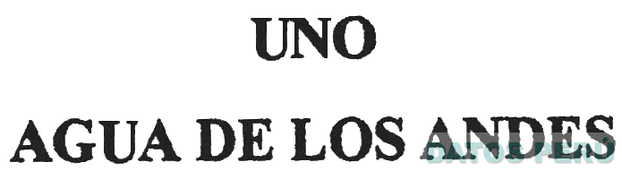 La denominación UNO AGUA DE LOS ANDES escrita en letras características, apreciándose la denominación UNO escrita en letras características en la parte superior y la denominación AGUA DE LOS ANDES escrita en letras características en la parte inferior; conforme al modelo adjunto