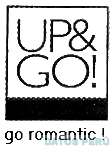 El logotipo conformado por la denominación UP & GO! escrita en letras características dentro de una figura rectangular, en cuya parte inferior se aprecia una franja horizontal, debajo la denominación GO ROMANTIC! escrita en letras características, sin reivindicar colores; conforme al modelo adjunto