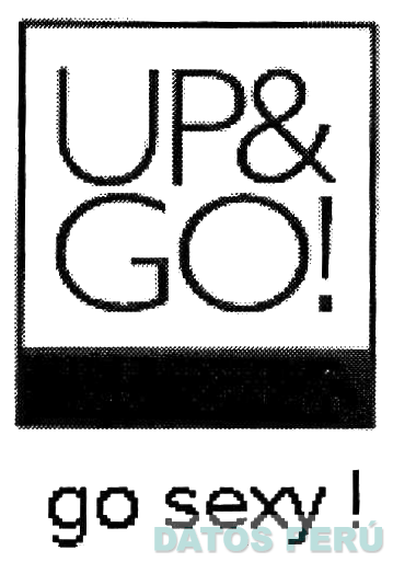 El logotipo conformado por la denominación UP& GO! escrita en letras características dentro de una figura rectangular, en cuya parte inferior se aprecia una franja horizontal, debajo la denominación GO SEXY! escrita en letras características, sin reivindicar colores; conforme al modelo adjunto