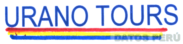 El logotipo conformado por la denominación URANO TOURS escrita en letras características; debajo tres líneas horizontales; todo en colores azul, rojo y amarillo; conforme al modelo adjunto