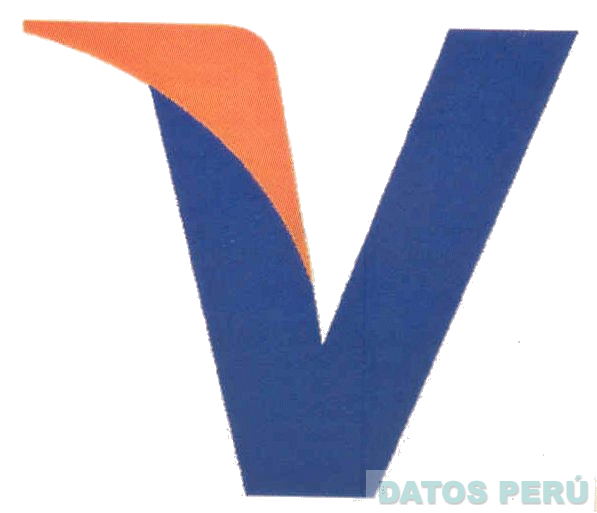 El diseño estilizado de la letra V, alada, en los colores azul y anaranjado; conforme al modelo adjunto