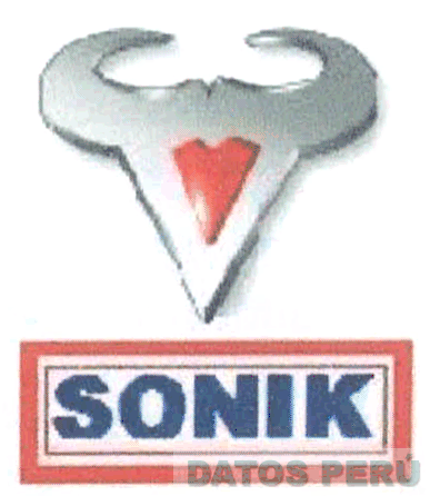 El logotipo conformado por la representación de una V con unos cuernos de color gris y en su interior otra V de color rojo; en la parte inferior la denominación SONIK escrita en letras características en color azul con un marco de dos líneas de color rojo; la primera delgada y la segunda gruesa; conforme al modelo adjunto