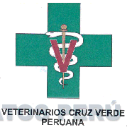 La denominación VETERINARIOS CRUZ VERDE PERUANA escrita en letras características y la representación estilizada de una cruz que contiene una serpiente, un bastón y la letra V estilizada, todo en la combinación de colores verde, blanco, negro, marrón claro y granate; conforme al modelo adjunto