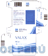 La caja empaque que contiene la denominación VALAX escrita en letras características, debajo aparece la denominación LS SAVAL escrita en letras características, las que se repite los otros tres lados del empaque, y demás frases alusivas al producto (sin reivindicar), en la combinación de colores blanco, negro, azul, gris, turquesa; conforme al modelo adjunto