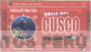 La etiqueta conformada por la denominación VALLE DEL CUSCO escrita en letras características; en el extremo izquierdo se aprecia la imagen de las ruinas Macchu Picchu encerrada en un círculo y en la parte inferior derecha, una pequeña taza con figuras irregulares y frases alusivas (sin reivindicar), en los colores rojo, amarillo, blanco, celeste, negro y verde; conforme al modelo adjunto