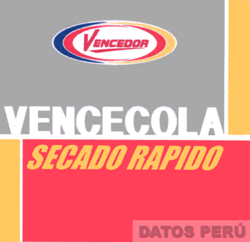 La etiqueta que contiene la denominación VENCECOLA SECADO RAPIDO escrita en letras características y en cuya parte superior se aprecia la denominación VENCEDOR escrita en letras características dentro de una figura ovalada, todo en la combinación de colores rojo, azul, amarillo, blanco y gris; conforme al modelo adjunto