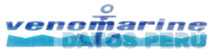 Las letras de color azul marino, con un ancla del mismo color que sobresale detrás de la letra M. Línea color celeste, gruesa, no uniforme debajo de la denominación VENOMARINE, conforme al modelo