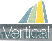 La denominación VERTICAL escrita en letras características de color blanco dentro de un rectángulo de fondo gris oscuro, así como la figura de cuatro columnas de color verde oscuro, verde claro, amarillo y verde oscuro; conforme al modelo adjunto