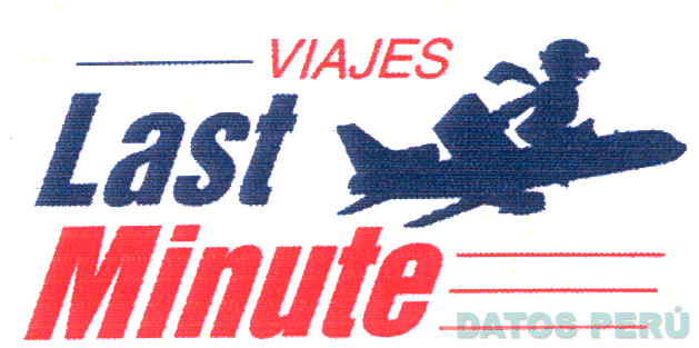 LA DENOMINACION VIAJES LAST MINUTE JUNTO AL DISEÑO CONSTITUIDO POR LA FIGURA DE UN AVION Y UN PASAJERO EN LOS COLORES AZUL Y ROJO, CONFORME AL MODELO ADJUNTO