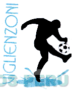 El logotipo conformado por la denominación VIGLIENZONI escrita en letras características y la figura de un futbolista con pelota sobre una figura irregular, todo en los colores negro, blanco y turquesa; conforme al modelo adjunto