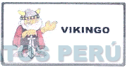 El logotipo conformado por la denominación VIKINGO escrita en letras características, al lado izquierdo la representación caricaturizada de un vikingo, con un casco gris, con cuernos amarillos y alrededor una cinta negra con círculos amarillos, barba de color blanca con vestimenta negra y capa roja, zapatos en color marrón y sosteniendo con la mano derecha una espada de color blanco en posición vertical y las manos en color anaranjado; conforme al modelo adjunto.