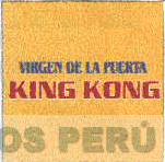 El logotipo conformado por la denominación VIRGEN DE LA PUERTA escrita en letras características en color azul con bordes blancos, debajo de la palabra KING KONG en letras características de color rojo con bordes blancos; conforme al modelo adjunto
