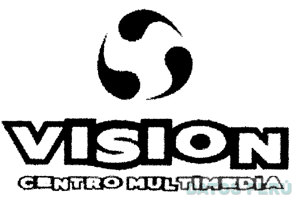 El logotipo conformado por la denominación VISION CENTRO MULTIMEDIA escrita en letras características y en la parte superior tres figuras irregulares, todo en los colores blanco y negro; conforme al modelo adjunto