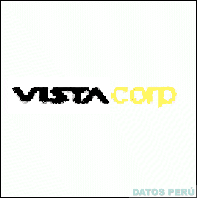 El logotipo conformado por la denominación VISTACORP escrita en letras características, dentro de un cuadrado, en la combinación de colores blanco, negro y amarillo; conforme al modelo adjunto