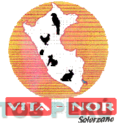 La denominación VITA-NOR SOLORZANO escrita en letras características sobre la cual se aprecia la representación estilizada del mapa del Perú en cuyo interior se aprecian las siluetas de un loro, un gallo, un pollo, un perro y un conejo, sobre una circunferencia que contiene rayas horizontales, y en la parte inferior se aprecia una franja horizontal dividida en tres partes que contiene la denominación VITA-NOR escrita en letras características, en los colores blanco, anaranjado, rojo y negro; conforme al modelo adjunto