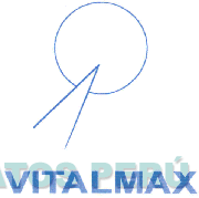El logotipo conformado por la denominación VITALMAX escrita en letras características; en la parte superior la figura de un círculo del cual sale un haz de luz de 22.5° desde el punto de un tercio de radio de distancia desde el centro y con longitud igual al diámetro del círculo; todo en color azul; conforme al modelo adjunto