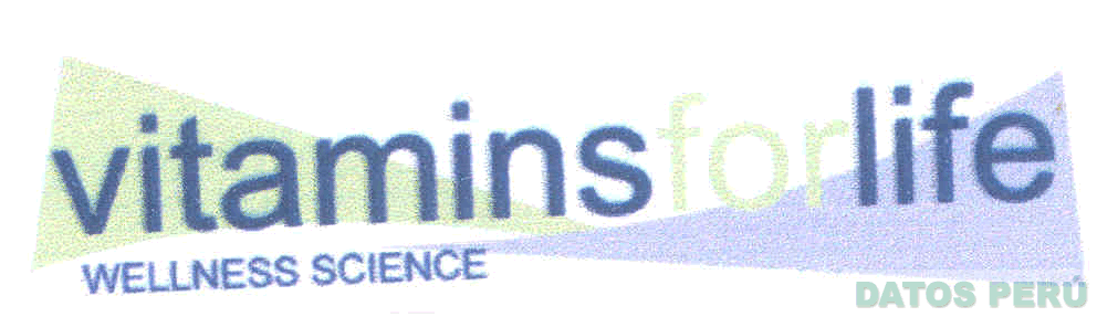El logotipo conformado por la denominación VITAMINSFORLIFE (sin reivindicar) y debajo la denominación WELLNESS SCIENCE (sin reivindicar), ambas escritas en letras características, acompañadas por dos figuras irregulares, en los colores verde, azul y lila; conforme al modelo adjunto