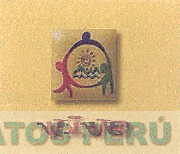 El logotipo conformado por la denominación VIVE escrita en letras características de color rojo, en la parte superior un cuadrado de color dorado dentro del cual se aprecie la figura estilizada de tres personas tomadas de la mano formando un círculo y un paisaje representado por el sol de color amarillo que se dispone entre montañas de color verde, sin revindicar el color amarillo del fondo, conforme al modelo adjunto