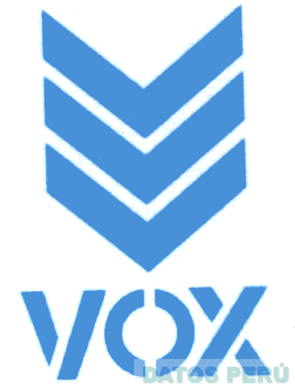 El logotipo conformado por la denominación VOX escrita en letras características que presenta en la parte superior tres figuras consecutivas que asemejan la forma de tres letras V, todo en los colores celeste y blanco; conforme al modelo adjunto