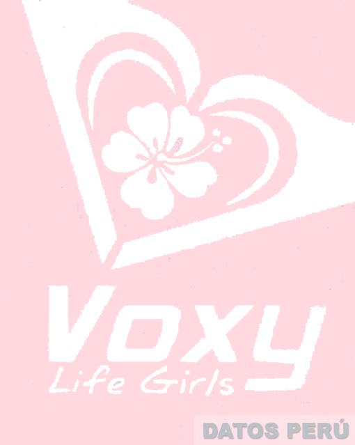 El logotipo conformado por la representación estilizada de un corazón, en el cual se aprecia una flor, debajo la denominación VOXY escrita en letras características, y la frase LIFE GIRLS escrita en letras características, todo en la combinación de colores rosado y blanco; conforme al modelo adjunto.