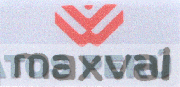El logotipo rectangular que contiene la denominación MAXVAL escrita en letras características, sobre la cual aparece la representación de una figura irregular, todo en los colores rojo, gris y negro; conforme al modelo adjunto