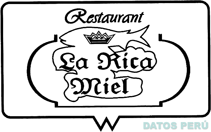 El logotipo conformado por la denominación RESTAURANT LA RICA MIEL escrita en letras características dentro de la figura estilizada de una olla donde la tapa tiene la forma estilizada de un pescado dentro del cual se aprecia una corona, todo dentro de una figura rectangular que tiene en su parte inferior la letra W estilizada; conforme al modelo adjunto