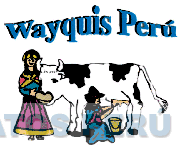 La denominación WAYQUIS PERU escrita en letras características, en la parte inferior se aprecia la figura de una vaca y dos mujeres, una de ellas vestida con sombrero y falda, y la otra se aprecia sentada ordeñando a la vaca, todo en la combinación de colores fucsia, turquesa, rojo, negro, amarillo, beige, anaranjado, cyan y blanco; conforme al modelo adjunto